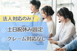 職種/仕事内容 | 募集背景 業績好調による増員 仕事内容 ★オススメPOINT★ ・時給UPキャンペーン中で初月1500円の高時給! ・法人対応なのでクレーム対応なし! ・服装・髪型・ネイル自由! ・未経験歓迎! マニュアル・研修・サポート体制充実! ★★お仕事内容★★ 大手通信サービス利用中のお客様(法人)からの お問合せ対応 ■どんなお問合せ?? 「先月の料金支払いが完了しているか」 「社名が変わったがどうしたらよいか」など... 上記作業をマニュアルに沿って 対応していくだけ! ■不安な方も大丈夫! \ 研修制度充実 / 入社後は約10日間の研修があるので安心♪ マニュアルの使い方や対応を教わります。 \ わからないことはすぐに聞ける環境 / 対応中に分からないことがあっても 先輩スタッフさんが近くにいるので安心♪ \ 時給UPキャンペーン中 / 今ダケ!入社から1カ月間時給200円UP★ 1500円の高時給でしっかり稼げる!  ̄ ̄ ̄ ̄ ̄ ̄ ̄ ̄ ̄ ̄ ̄ 安心のサポート体制 ___________ ミックコーポレーションでは お仕事が始まる前はもちろん、 就業後も定期的にサポートします! ===安心POIN=== ・入社時の立ち合い ・初日の就業後のフォロー ・定期面談は最低月1回以上 ============== 「職場環境が自分と合わない・・・」 「なかなか職場に馴染めない・・・」など、 お仕事のお悩みはなんでもご相談ください♪ 働きやすい環境作りをしっかりサポートいたします! ~~~~~~~~~~~~~~~~~~~ 【 クレームほぼ無し 】 「コールセンターってクレーム対応が大変そう…」 そんなイメージをお持ちの方も多いと思います。 !!!でも大丈夫です!!! お客様は法人の方になるので クレーム対応はほぼありません! 【 出張面接OK 】 ご自宅近くや職場の近くで面接OK! 就業中の方でもお仕事終わりの対応OKなので ご希望の日程をお伝えください♪ [こんな人が活躍] 弊社は未経験スタートのスタッフが 半数を占めています。 そのため、先輩スタッフも新人の時 何がわからなかったのかと考えて 先輩から話しかけるようにしています。 困ったこと、不安なことは 一緒に解決していきましょう。 |