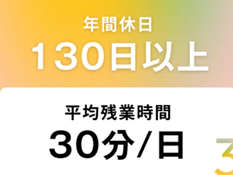 休日休暇 | 休日休暇 ◎年間休日130日 【休日休暇】 ■完全週休2日制(土日) ■祝日休み ■年末年始休暇 ■GW休暇 ■夏季休暇 ■慶弔休暇 ■有給休暇 ■産前・産後休暇(取得実績あり) ■育児休暇(取得実績あり) ■介護休暇 ■ファミリー休暇(年間3日間) └結婚記念日、旦那さん・奥さんの誕生日、子供の誕生日など ★5日以上の連続休暇OK! |
