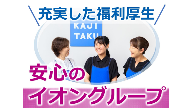 職種/仕事内容 | 仕事内容 ✦———✦———✦———✦———✦ ◎ 30、40、50代活躍中 ◎ 主婦・主夫業が活きるお仕事 ◎ 初めての正社員・ブランクあってもOK ◎ 仕事と家庭/育児との両立がしやすい ◎ 柔軟な働き方が可能! ◎ 未経験でも安心の研修制度 ◎ イオン従業員のお買い物割引制度あり ✦———✦———✦———✦———✦* \大手グループの安定基盤で正社員!/ イオングループの家事代行スタッフ≪正社員≫ として働きませんか? しっかりお仕事して収入を確保されたい方も、 ライフスタイルに合わせて、柔軟にお仕事をしたい方も ご希望によって調整が可能です。 (時短の場合、1日5~7時間の勤務もできます) ─────── 仕事内容 ─────── 普段の家事経験が活かせるお仕事です。 特別なスキルは必要ありません。 お客様のお宅で、いつものお掃除やお洗濯をお願いします。 ◎水まわり(キッチン・浴室・トイレ)の掃除 ◎お部屋の掃除 ◎衣類の洗濯など ※介護・ベビーシッター・ペットの世話などはなし ※経験を積んだ後、トレーナースタッフとしてもご活躍いただけます。 【1日のお仕事の流れ一例】 ・09:00/自宅からお客さま宅へ直行 ・10:00/お客さま宅を訪問し、お掃除開始 ・13:00/お掃除完了 ・14:00/休憩 ・15:00/2件目のお客さま宅へ移動し、お掃除開始 ・16:00/お掃除完了 ・17:00/本社or自宅で事務作業 ※案件には「スポット(単発)・定期」の2種類があり、基本的には「曜日・時間固定」で働けます ※急なお休みにも対応できるよう、サポート体制もあります◎ ─────────────── 時短勤務でもOK! ─────────────── フルタイム(8時間勤務)だけでなく、 ご自身のライフスタイルや家庭の事情に合わせて、 5〜7時間の時短勤務も柔軟に選択可能です! 「子育てや介護と両立したい」「自分の時間も大切にしたい」など、 働き方の希望に寄り添ったシフト設計ができます。 【時短勤務の条件】 ・お子様の育児(小学校6年生まで) ・ご家族の介護(常時介護を必要とするご家族で要介護2以上) <月収例(週5日勤務の場合)> ・7時間勤務(1時間短縮):月給259,000円 ・6時間勤務(2時間短縮):月給242,000円 ・5時間勤務(3時間短縮):月給226,000円 勤務時間の調整は面接時にご相談いただけますので、お気軽にご希望をお聞かせください! ────────────────── 家計にうれしい「社員割引制度」あり♪ ────────────────── イオングループの各社でのお買い物が、お得にご利用いただけます! 【食品】 5%割引(対象店舗:まいばすけっと、マルエツ、グリーンビーンズなど) 【衣類・靴】 10%割引 【住まいの品】 8%割引 【家電】 5%割引 ─────────────── 未経験の方でも安心の研修制度 ─────────────── 未経験の方にも丁寧な研修制度をご用意。 先輩スタッフが指導しますので、安心してスタートできます。 業務開始後も困ったことがあれば、いつでも相談できる体制です。 ─────────────── 家庭・育児との両立を応援! ─────────────── 柔軟な勤務時間を選べたり、時短勤務も可能なのでお子様がいる方も安心! お互いに協力しながら働ける職場です。 ─────────────── イオングループの充実した福利厚生 ─────────────── イオングループならではの手厚い福利厚生で、安心して気持ちよく働ける環境を用意! ◎イオンシネマ特別優待 ◎イオングループスポーツ施設利用補助 ◎従業員クレジットカード申込によるお買物割引 など ─────────────── 資格取得など、スキルアップを応援! ─────────────── 整理収納アドバイザーなどの資格取得の援助金制度をご用意するなど、働く一人ひとりのスキルアップを応援しています! |