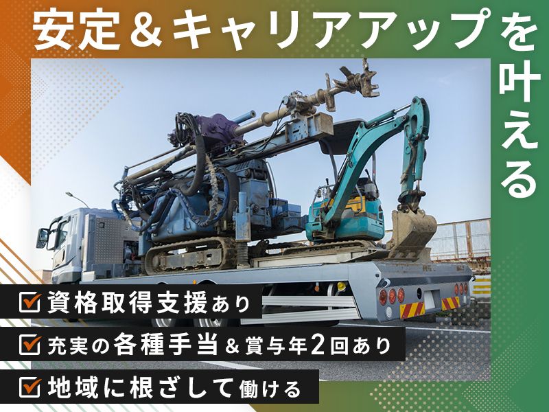 対象となる方 | 必要資格・経験 \経験者歓迎!/ <必須> ●大型自動車免許 <歓迎> ●大型特殊自動車免許 ●車両系建設機械運転技能講習を 修了された方 <POINT> *U・Iターン歓迎 |