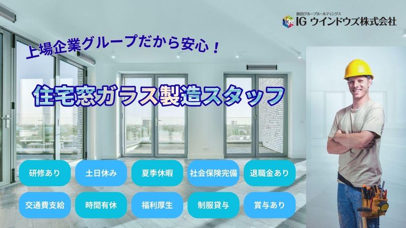 勤務地 | IGウインドウズ株式会社 群馬工場 373-0803群馬県太田市矢場町2755-1 |