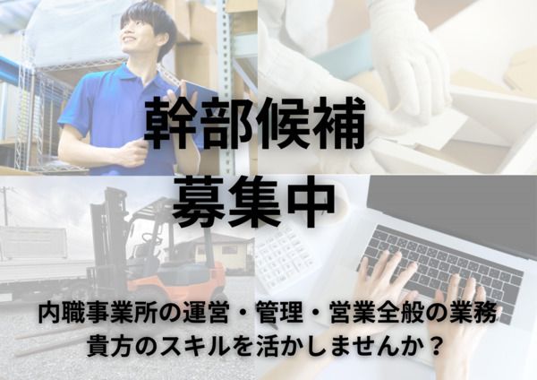 職種/仕事内容 | 仕事内容 内職事業として、15年以上の実績があり、 名古屋市北区に事業所を構えて10年目。 安心と信頼で、お客様と内職スタッフをつないできました。 これからの業務発展のため、幹部候補を募集致します。 ≪仕事内容≫ 軽作業中心の内職事業所の運営管理に関するお仕事をお任せ致します。 【運営管理・売上管理・顧客管理】 クライアントからのお仕事依頼や、新規取引先開拓などの営業業務。 実際に仕事を受けてくれる内職スタッフへの発注業務、リフトを使った倉庫内入出庫管理。 また、納期ギリギリのお仕事のサポート業務など。 受注したお仕事の一部は、 障がい者就労支援事業所の作業訓練の元となる仕事もあり、 社会貢献の高い業務でもあります。 事業所運営に必要なノウハウを、上席社員のサポートで、ひとつひとつ覚えていただき、 のちの管理職候補として育成致します。 |
