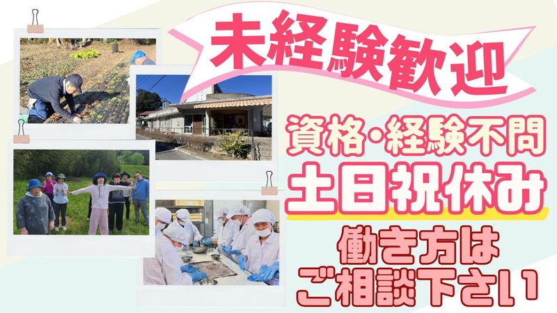 職種/仕事内容 | 仕事内容 今はパートで、生活や自分の時間を 大切にしながら働きたい。 この仕事は、そんなスタートで まったく問題ありません◎ 生活介護事業所むつぼしでは、 知的障がいのある利用者さんの 日中の生活を支えるお仕事をしています。 といっても、 最初から難しいことを任されることはありません。 ・一緒に畑で作業をする ・食品づくりや販売のサポート ・移動や食事など、日常生活のお手伝い できることから、少しずつ覚えていきます。 *★⸜ 資格や経験は不要です ⸝★*。  ̄ ̄ ̄ ̄ ̄ ̄ ̄ ̄ ̄ ̄ ̄ ̄ ̄ ̄ ̄ ̄ 現場では必ず周りにスタッフがいて、 分からないまま一人で抱えることはありません。 この施設で大切にしているのは、 「無理をさせないこと」。 利用者さんだけでなく、 働くスタッフの生活も同じくらい大事にしています。 有給休暇も取りやすい環境で、 休みたいときは、休む。 いない日は、周りで自然にカバーする。 そんな空気が当たり前です♪* 今はパートで。 慣れてきたら、その先を考える。 生活の変化に合わせて、働き方を選べるように 正社員登用制度もあります。 やってみたいなと思った方は お気軽にご連絡ください! |