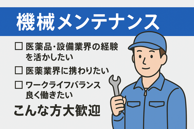 職種/仕事内容 | 仕事内容 液剤充填機のメンテナンススタッフ募集! バイアル・シリンジ・目薬などに使用される液剤充填機のメンテナンスをお任せします。 関西地区の製薬会社の工場を訪問し、機械の点検・ベアリング交換・タッチパネル操作などを行います。 ※詳細はホームページをご覧ください 勤務拠点は大阪市内の事務所。 摂津・伊丹・十三・東大阪など、各地の製薬会社工場へ出向いて作業を行っていただきます。 機械駆動部のグリスアップ・ベアリングの交換作業を実施。 ★ベアリングとは 歯車やタービンなどの回転を支える重要な部品。 あらゆる機械の中にあるので、汎用性のあるメンテナンス技術が身に付きます! ★最初は同行研修! 実際の作業を見ながら、基礎知識や簡単な作業から覚えていきましょう。 1人前になるまで、しっかり研修していきますのでご安心ください! ★旅行気分でお仕事! 関西各地の現場を訪問する中で、地元グルメや街の雰囲気を楽しめることも♪ 【当社で働くメリット】 ①キャリアアップのチャンス! 経験やスキルを活かして、新たなキャリアを築きませんか? ②ワークライフバランスを重視! 家族との時間や趣味の時間を大切にしながら働けます。 ③安定した収入と福利厚生! 安定した収入に加え、各種手当や福利厚生も充実。将来を見据えた働き方ができます。 ④充実した研修制度! 未経験の方でも安心してスタートできるよう、丁寧な教育を行います!新しい環境でのチャレンジを全力でサポートします! |
