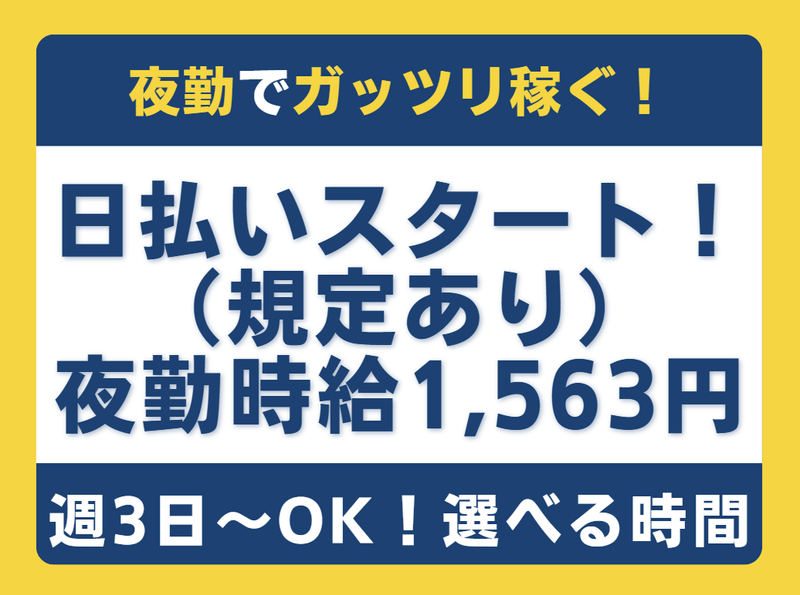 職種/仕事内容 | 仕事内容 \ 即払い制度(規定)スタート! / 夜の時間を、高時給で有効活用しませんか? 接客なし・力仕事なし。自分のペースで働けるシンプルな軽作業のお仕事です。 【お仕事内容】 お任せするのは、大手コンビニへ配送されるチルド商品の検品。 リストを見ながら、決まった数を、決まった場所へ台車で運ぶだけ。 重い物を持ち上げる作業は一切ないので、性別や年齢に関係なく、どなたでも安心してスタートできます。 ■具体的な仕事内容(3ステップで完了!) (1)トラックから降ろされた番重(ばんじゅう)が目の前に。 (2)店舗リストを見て、番重の枚数を「いち、に、さん…」と数えます。 (3)数が合っていたら、台車に乗せて指定の場所までコロコロ運ぶだけ! *台車があるので、重さの心配なし *基本的には、モクモク・コツコツ作業! ■扱う商品 プリン・ヨーグルト・ 飲料・お惣菜・生卵等のチルド製品 ✅軽量商品中心で安心! 働く倉庫について| 倉庫内は、年間を通して5℃~7℃程度に保たれています。 冬も体を動かせばすぐにポカポカしてくる快適な環境です。 ■この仕事のポイント ✅深夜の高時給で効率的! 深夜帯(22時~翌5時)は時給1,563円!短時間でもしっかり稼げます。 ✅日払い制度あり(規定あり) ✅力仕事ゼロ!未経験でも安心 商品は台車で運ぶのでラクラク。体力的な負担は一切ありません。 ✅週2日~OK!柔軟なシフト 「本業が終わった後に」「授業がない日に」など、あなたの生活に合わせて働けます。 ✅安定の大手グループ SGホールディングスグループだから、長期で安心して働ける環境です。 「派遣として働くのは初めて・・・」そんな方でも安心してお仕事していただけるように、私たち株式会社エムズラインのスタッフが、あなたをしっかりサポートします! |