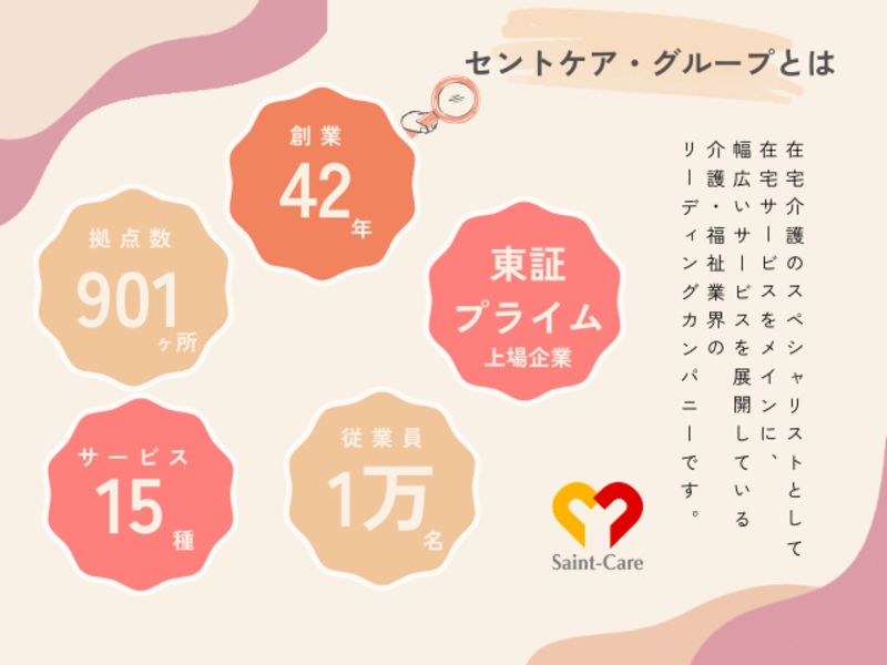職種/仕事内容 | 仕事内容 【働きやすさ◎効率化で寄り添ったケアを!ICT化推進中】 勤怠、交通費、情報共有、訪問記録などアプリで完結 事務的業務の負担を軽減し、ケアに集中できる時間を作ります。 ◎育成担当者全営業所に配置、教育・研修体制を強化 ◎研修は経験やケア内容に合わせて進めて行くので安心! ◎訪問範囲:宮城野区、多賀城市など(片道30分内) 清掃、洗濯調理、お買い物や入浴・排せつ・食事の介助などケア内容や時間は事前決まっています。できることから少しずつお任せします。 ◎様々な働き方ができる! セントケアでは、子育て中のママさんスタッフや久しぶりの社会復帰という方も活躍されています。正社員へのキャリアアップや育児短時間勤務などを利用し、安定して長く活躍できる基盤を整えています。有給取得率も高いため無理なく働いていただけますよ。 |