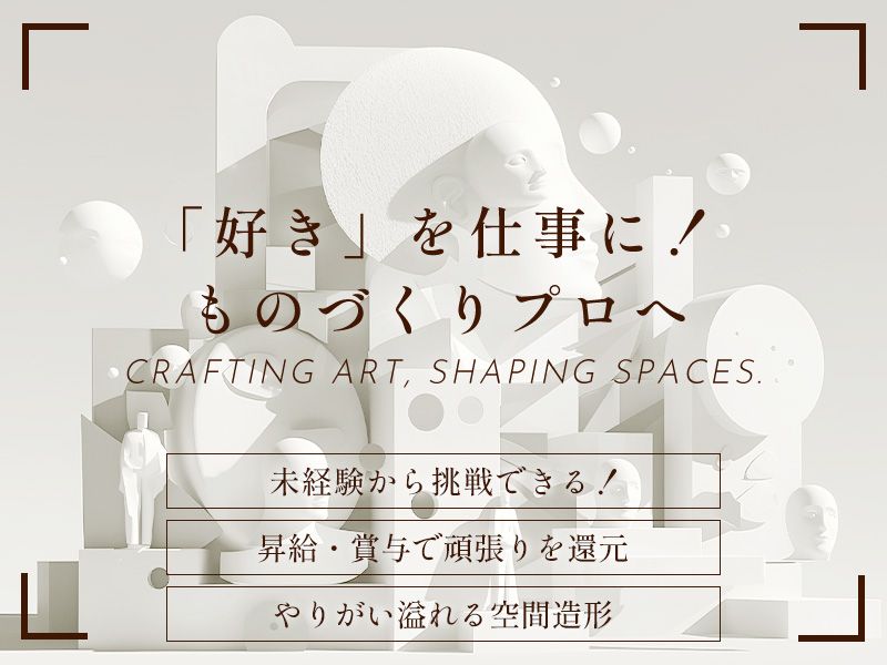 職種/仕事内容 | 仕事内容 // 未経験から「ものづくり」のプロを目指す! ディスプレー・モニュメント製作業務 高卒の方も大歓迎! あなたの「好き」を仕事にしませんか? \\ 【求人のPOINT】 ✅未経験から挑戦できる ✅昇給・賞与で頑張りを還元 ✅誰もが目にする場所に作品が! ⇒大きな達成感を味わえる仕事です 【仕事内容】 商業施設やテーマパーク、美術館などに 展示される立体的な造形物 (キャラクター、オブジェ、壁面装飾など)の 企画・設計から、実際の製造、塗装、 そして現場での設置まで、一貫して手掛けていただきます。 ▼具体的な業務 ①企画・3DCG設計: お客様のイメージを基に、3DCGソフトで 造形物の設計(モデリング)を行います。 ②デジタル原型製作: 3Dプリンターや加工マシンを使い、 設計データを立体的な原型に作り起こします。 ③造形・成形・塗装: 原型に手作業で細かな造形を施し、 強化プラスチック(FRP)で強度を高め、 色彩豊かな塗装で仕上げます。 ④設置工事: 完成した造形物を全国の施設へ運び、 安全に設置します。 ⑤不燃・難燃材料の開発: 大学と協力して、新しい技術 (燃えにくい3Dプリンター素材など)の 開発に取り組んでいます。 |