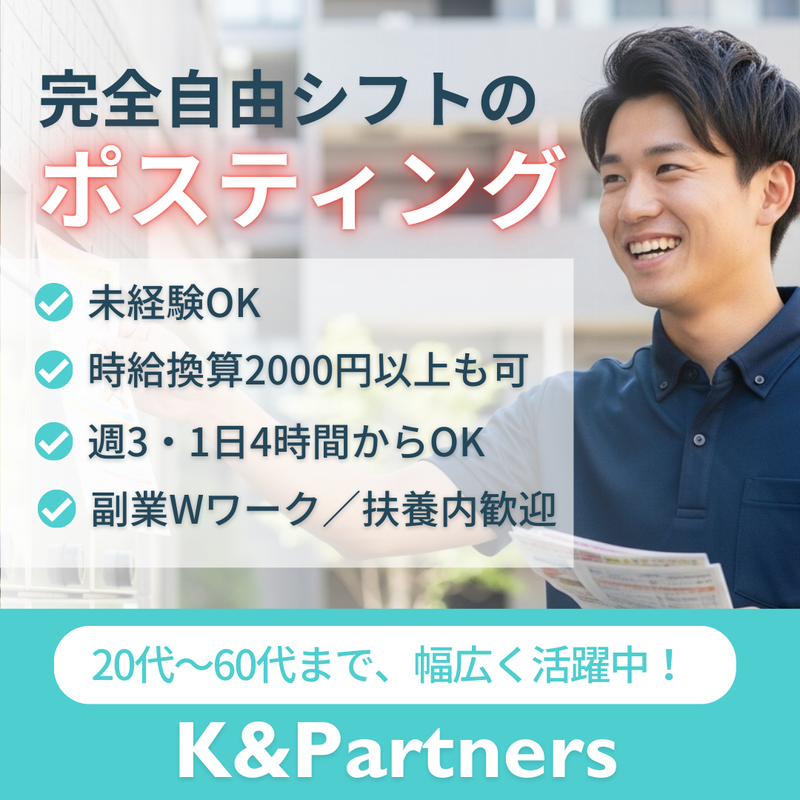 職種/仕事内容 | 仕事内容 ◆――――――――――――――◆ 「やりたい事に時間を使いたい」「縛られずに働きたい」 そんな20代〜30代のフリーターが多数活躍中! ◆――――――――――――――◆ ポストにチラシを入れていくだけの“超シンプル”なお仕事。 店舗で朝7時〜9時の間にチラシを受け取り、担当エリア内で配布をお願いします。 スマホで地図を見るだけでルートに迷いません。 音楽を聞きながらでもOKなので、リフレッシュしながら働けます♪ 働きたい時にだけ働けて、短時間でもしっかり稼げます。 接客なし&ひとり作業なので、人間関係のストレスゼロ◎ 【このお仕事のPOINT】 ⭐自由度MAX!働きたい時だけ働ける ・週3〜OK、1日4時間〜OK ・出社時間も7:00〜9:30の間で自由 ⭐見た目ぜんぶ自由 髪色・髪型自由・ピアス/ネイルOK・服装自由(私服のままでOK) ⭐日払い・週払いOK 急な出費にも即対応!「今日働いた分を今日もらえる」安心感 ⭐一人作業/接客なし 店舗勤務や人間関係に疲れたフリーターさんも安心!気楽に働けます ⭐電動自転車・カート貸出あり 電動自転車・カートを使えばチラシの持ち運びもラクラク♪ ⭐夢追い人が多い環境 舞台役者、声優志望、バンドマン、インフルエンサー志望など 「本業が別にある若手」が多く、オーディションや本番の日はお休みOK。 ⭐収入UPの嬉しい制度もたくさん! ・面接交通費をQUOカードで面接当日支給! ・勤続5日目に5,000円のボーナス支給✨その後も勤続日数に応じて、ボーナス支給! ・お友達を誘って入社に繋がった場合、勤続15日目に20,000円を支給!(規定あり) ・賃貸物件契約の際の敷金/礼金などの前金を無償支給制度もあり!(規定あり) |