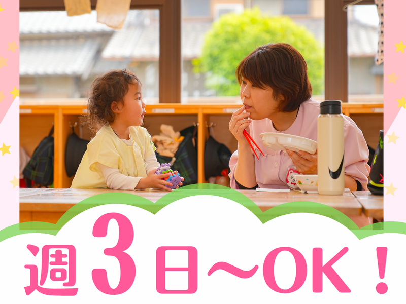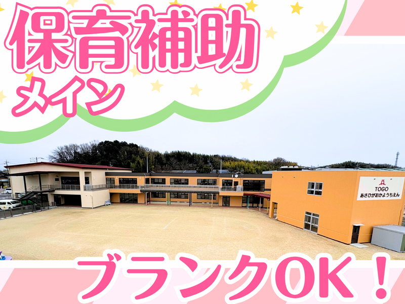 職種/仕事内容 | 仕事内容 <求人のpoint> ✅保育補助メインのお仕事 ✅勤務時間やシフトは相談可能♪ ✅週3日~OK!家庭との両立もバッチリ ✅ブランク有や育児復帰も応援! ◆ 仕事内容  ̄ ̄ ̄ ̄ ̄ ̄ ̄ / 事務や書類作成に追われることが少なく、 保育に集中できるのが魅力! \ 延長保育時のお子さんの保育補助やサポートをお任せします。 延長保育時は日中頑張ったお子さんが 好きなことをしてゆったりと過ごす時間です◎ ◆ 森川学園について  ̄ ̄ ̄ ̄ ̄ ̄ ̄ ̄ ̄ ̄ ̄ 東郷町と日進市で幼稚園を運営する学校法人です。 「好きな事を伸ばして 希望で胸がときめくような園生活」を理念に、 下記3つの教育目標を掲げて お子さんたちがのびのびと過ごせる環境づくりをしています。 ・丈夫な体で明るく元気な子どもに ・思いやりのある豊かな心と意欲のある子どもに ・力いっぱい最後まで頑張る子どもに お子さんの心の成長をはぐくむために、 弦楽器の体験や社交ダンスなどの 様々な文化芸術体験プログラムにも力を入れています! また、「美味しくて安全なものを味わってもらいたい」という想いから、 給食は添加物を一切使っておらず 使用する油や野菜、お米などは 素材や産地にとことんこだわっています◎ ◆ 園の特色  ̄ ̄ ̄ ̄ ̄ ̄ ̄ ̄ 今回募集する、東郷旭丘幼稚園は 東郷町にある唯一の幼稚園です。 現在の園児数は150名ほど。 職員同士仲が良く、 パートさんも有給を自由に使っており消化率は9割以上です♪ ――――――――――――――――――――――――― \\姉妹園でも募集中// ★HPやSNSもご覧ください★ ■HP 東郷旭丘幼稚園:https://togo.morikawagakuen.jp/ 日進旭丘幼稚園:https://nisshin.morikawagakuen.jp/ ■インスタグラム:togoasahigaoka ――――――――――――――――――――――――― |