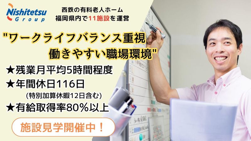 職種/仕事内容 | 仕事内容 ⭐未経験OK!残業少なめ!月5時間程度 ⭐夜勤あり◎月収24万1000円~も可能♪ ⭐資格取得支援や自己啓発支援あり ⭐キャリアップが可能!管理職登用も◎ **┈┈┈┈┈┈┈┈┈┈┈┈┈┈┈┈** 私たちと一緒に、入居者様の 生活をサポートし、笑顔あふれる 施設づくりに貢献してみませんか? **┈┈┈┈┈┈┈┈┈┈┈┈┈┈┈┈** ✅仕事内容 入居者様へのサービス提供や、 介護業務・生活支援業務全般を お任せします。 【具体的な内容】 ・食事介助 ・排泄介助 ・入浴介助 ・更衣の介助 ・掃除 ・洗濯 ・買い物代行 ・イベントの企画と実施 ・レクリエーションの運営 研修制度が充実しているため、 未経験の方でもしっかりと スキルを身につけることが できます。 <⭐キャリアパスについて⭐> 当社ではキャリアパス制度を 設けており、経験や能力に応じて ステップアップできる環境が 整っています。 資格取得支援制度もあり、 働きながらスキルアップを 目指すことができます。 <⭐福利厚生⭐> 福利厚生も充実しており、 安心して長く働ける環境を 整えています。 インフルエンザ予防接種費用の 全額負担や、市販医薬品補助など、 健康面でのサポートも行っています。 ※即日入社も可能ですが、 入社時期はご相談に応じます。 ※異動については、福岡県内での、 転居を伴わない範囲での施設異動の 可能性があります。 <⭐サンカルナ香椎照葉について⭐> 当施設は住宅型有料老人ホームとして、 入居者様の快適な生活をサポート する施設です。 入居者様が日々いきいきと 過ごせるよう、スタッフ一同 心のこもったケアを提供しています。 |