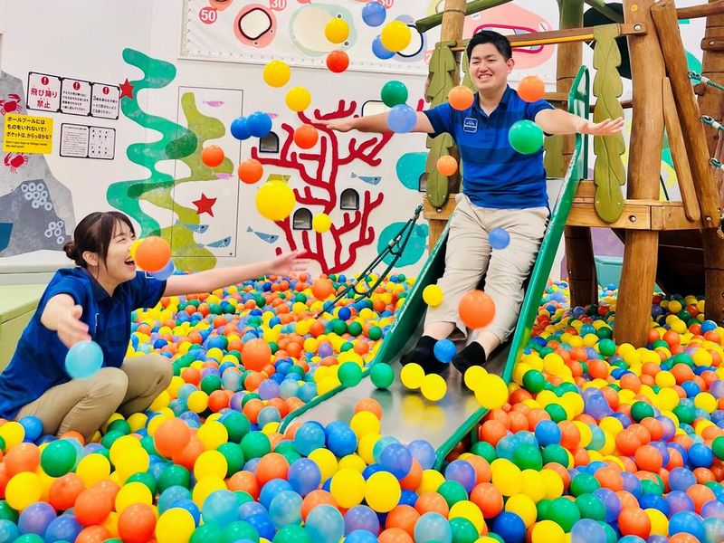 職種/仕事内容 | 仕事内容 <具体的には> *子ども達と一緒に遊ぶ *入場受付・利用方法のご案内 *保護者の方へのサポート *遊具やフロアの安全確認・点検 *片づけ・清掃 *チケット販売・レジ *イベントの企画・実施サポート 等 親子の室内あそび場「キドキド」で親子の遊びをサポートします。ごっこ遊び、ボールプール・トランポリンを使って体を動かしたり、モノ作り、組立遊びetc.子ども達と一緒に様々な遊びを行います!また四季に合わせたイベントやお誕生日会、宝探し、ビンゴ大会の運営等も手掛けていて、子ども達の喜ぶ声と笑顔があふれる職場♪ 1h毎に遊びと受付を交互で運営するので体に負担なし!レギュラーシフト時は食事の1h休憩以外に30分休憩がありますが時給を支給。休憩スペースにはいつもお菓子があったり、土日祝は時給UPしたりと働きやすい職場です! |