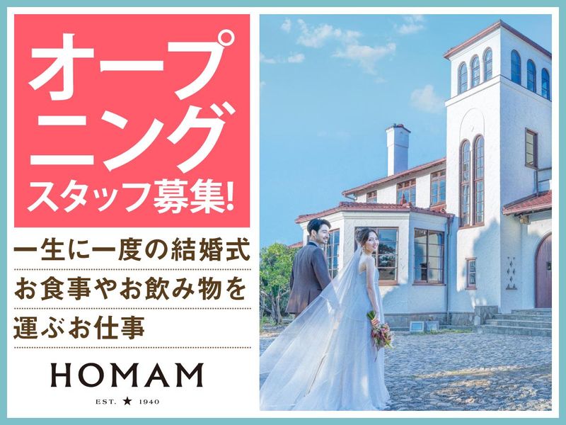 職種/仕事内容 | 仕事内容 *駿河湾を望む絶景の結婚式場* 2026年3月オープン予定の新しい式場で、 オープニングスタッフを募集♪ 感動いっぱいの結婚式場の立ち上げを 一緒に楽しんでみませんか? 週1~/1日4時間~OKの 柔軟シフトでWワーク・副業OK! フリーターさんも大歓迎♪ ☆開業までの1月~3月上旬は系列の 結婚式場「アマンダンライズ」で研修アリ◎ +++ HOMAM 旧マッケンジー邸は 国登録有形文化財の洋館と調和した 駿河湾の絶景を一望できる クラシカルな結婚式場。 ウエディングのお手伝いをするお仕事です◎ 今回はオープニングにつき、 立ち上げから携われます! <主なお仕事内容は…> 結婚式場スタッフとして 次のお仕事をお任せ! ■会場の準備 ■お客様の上着や荷物のお預かり ■お席のご案内 ■結婚式のお料理・ドリンク提供 ※キッチン業務はありません◎ ―――――――――――――――― フリーター・社会人さんに オススメのポイントはこちら★★ ―――――――――――――――― ・週1日~1日4時間~OKで融通◎ ・絶品のまかないアリ(^^) ・本業が休みの土日だけ等大歓迎! ・かけもち・副業OK! ・立ち上げから一緒に創り上げる楽しさ! ・オープニングだから上下関係なし! ・開業前の研修は週末だけでもOK! ┗ガソリン代含む交通費支給◎ まかないは本格料理人たちが 美味しい食材を使って作ってくれます♪♪ ―――――――――――――――― 特別な1日をサポートするお仕事 具体的な仕事の流れは? ―――――――――――――――― ▶STEP.1 ミーティング 披露宴の流れやお料理について スタッフ間で事前に確認して 式中にバタバタしないようにします◎ ▶▶STEP.2 披露宴会場の準備 お席に置く名札や ゲストの方に渡す引き出物を確認したり グラスを磨いたりして準備します。 ▶▶▶STEP.3 お客さまのお出迎え 荷物をお預かりし、 待合室でドリンクをお出しします! ▶▶▶▶STEP.4 ホール業務 お席にご案内し、順番にお料理や ドリンクを提供します◎ ―――――――――――――――― 未経験者歓迎! みんなで助け合う雰囲気です ―――――――――――――――― 新式場での営業開始に向けて、 最初は静岡県にある系列店 「アマンダンライズ」で 研修をスタート! 最初は結婚式の見学からスタート! 見学後は本番じゃないところで、 研修を実施します◎ 「結婚式でのバイトは初めて」 そんな方もご安心ください。 不安がなくなるまで、 スタッフ全員でサポートします◎ |