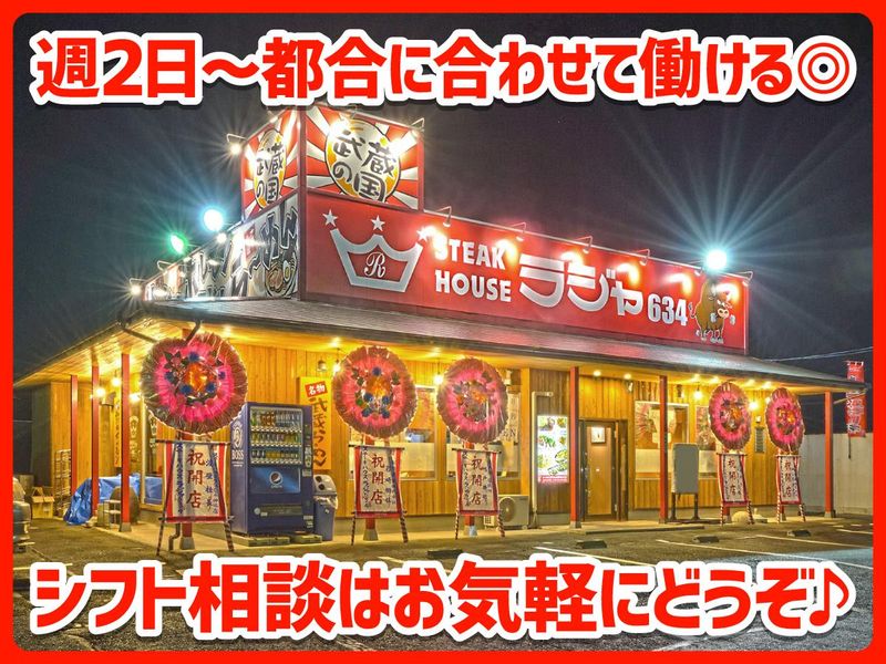 職場環境・雰囲気 | 職場環境 ステーキ店のラジャとラーメンや 焼き鳥などを提供する武蔵の国が 一緒になったお店。 ファミリー層の来店が多いです◎ |