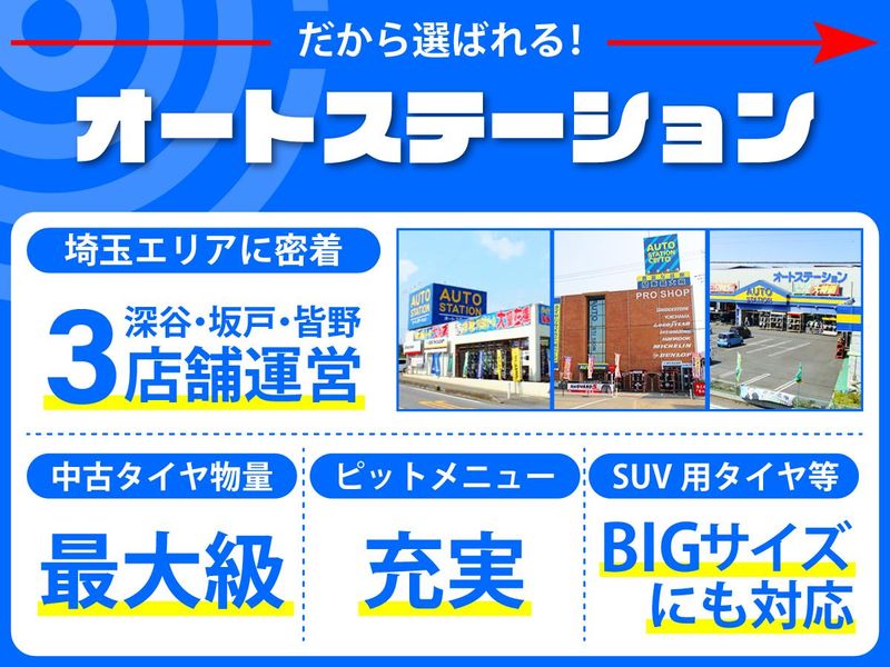 職種/仕事内容 | 仕事内容 \\\ 業績好調につき増員募集! /// 《無資格歓迎》「車が好き」な方にオススメ 《私生活も充実》繁忙期以外は残業ほぼなし 《しっかり稼げる》未経験で月給30万円~ ==================== 「タイヤ交換はオートステーションだよね! 取付け上手だし、安いし!」…お客様から、 そんな嬉しい声を沢山いただいております! 地域に根付いた店舗で、車に深く携われます << 私たちと一緒に働きませんか? >> ==================== 【仕事内容】 タイヤ交換をメインに、 ピットスタッフの業務全般をお任せします! お客様と会話をするタイミングもありますが 「明るく元気に」対応してくださればOK!! 将来的にはオイル交換や足回り、 自動車の整備なども覚えてステップアップ! [作業時間]40分~60分/1台 【充実したサポート体制で安心スタート!】 入社後は、機械の使い方・工具の名前など イチから教えます。入社後、1ヶ月程度で 一通りの作業を覚えている方がほとんど! もちろん、わからないことは都度質問OK! ー【オートステーション】ー [企業HP] https://autostation.co.jp/ 埼玉県で3店舗を展開中のタイヤ&カー用品 専門店です!地域に根差した業態で、地元の お客様からの信頼と高い評価を得ています! |