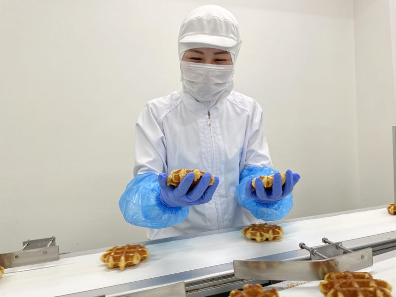 職種/仕事内容 | 仕事内容 ・ー・ー・ー・ー・ー・ー・ ▼電話応募はこちらから! 072-734-4100 ※お電話でのご応募もOK! ・ー・ー・ー・ー・ー・ー・ 生地の製造補助、焼き上がり製品の 目視検品・箱詰め、ライン作業など :::: 具体的には・・・ :::: ●食材検品、計量、生地製造 →商品に使う小麦粉や季節商品の食材を 確認して計量、生地を作ります ●ライン上に流れている商品の検品 →焼き上がった製品の焼き具合や 形状の確認などの目視検品 ●ライン上での梱包作業 →袋詰めや箱詰めなど ●機械清掃と製造場の清掃 →業務が終了したら機械と工場をお掃除 他、慣れてきたら機械オペレーションも お任せしていきます! :::: 未経験でも大丈夫! :::: 分業制でシンプルな作業が中心です! できることからお任せしていきますので 安心して始められますよ。 入社後のオリエンテーションや研修で ワッフルに関する知識や ワッフル製造の基礎を丁寧に教えます。 :::: スタッフにインタビュー :::: 自分が手掛けた商品を店頭で 見かけると嬉しくなります! 工場では焼き以外は手作業のため 大変ではありますが、多くのお客様に 喜ばれている商品を真心込めて 作ることがやりがいですし、 頑張ろうと思えますね! (工場勤務スタッフAさん) |