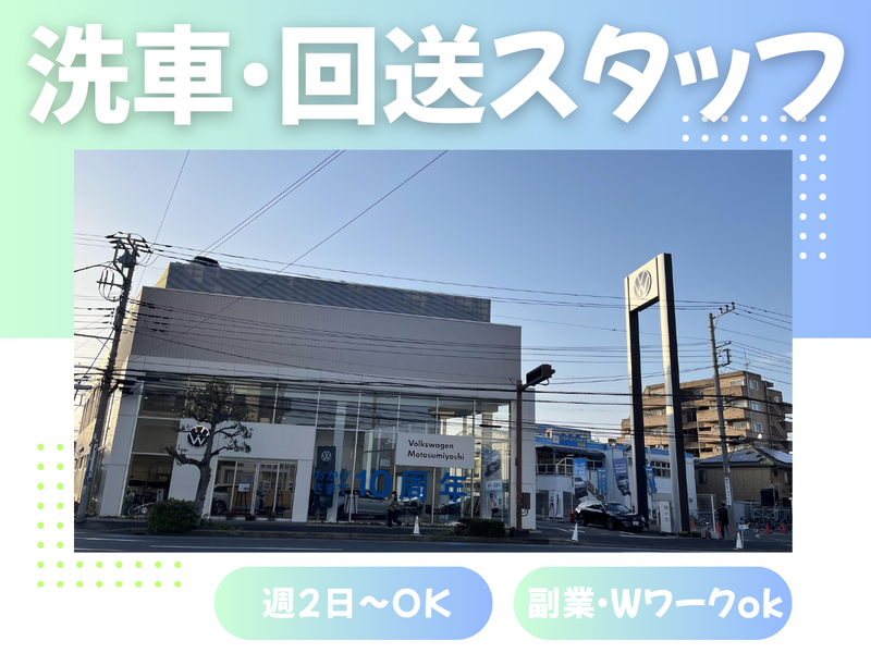 職種/仕事内容 | 仕事内容 ✦・┈┈┈┈┈ ・✦✦・┈┈┈┈┈ ・✦ ✅副業・Wワークで働きたい方歓迎! ✅週2日~勤務OK!自分の都合に 合わせて私生活も大切にしながら勤務♪ ✦・┈┈┈┈┈ ・✦✦・┈┈┈┈┈ ・✦ 【 ✨お仕事内容✨ 】 「車が好き」「憧れの車種がある」など 車好きにはたまらない! 人気のフォルクスワーゲン車に関わる 下記業務をお願いします! ≪洗車業務≫ ・車両を洗車場所へ移動 ・手洗い洗車 (機械を使用する場合もあり) ・車体のみ洗車 or 車体+車内清掃 (販売店による) ≪回送・誘導業務≫ ・車検や点検のお車をお客様宅へ引取・納車 ・近隣駐車場へ車両を移動 ・販売店の駐車場にてお客様のお車を誘導 経験者は特に歓迎! 作業手順はもちろん丁寧にお教えする ので安心して始められます! 【 ✨勤務地✨ 】 ⏩フォルクスワーゲン元住吉 神奈川県川崎市中原区木月4丁目29-25 Volkswagen元住吉 「日吉駅」徒歩13分 【 ✨シフトについて✨ 】 ⏩9:30~18:30(実働8時間) ≪定休日≫火曜日・水曜日 ★週1日~OK♪土日勤務優遇 ★Wワークの方も歓迎! 「お小遣い稼ぎに働きたい!」 「趣味の時間も大切にしたい!」 などシフトはお気軽にご相談ください♪ |