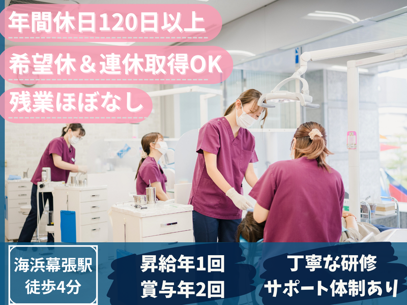 職種/仕事内容 | 仕事内容 ┏━━━━━━━━━━━━━━━━━━┓ 年明けスタート歓迎!綺麗なクリニック♪ 歯科衛生士を募集中✨ ┗━━━━━━━━━━━━━━━━━━┛ 「今の職場、忙しすぎてみんなピリピリ…」 「気を遣わず、 もっと自由に休みが取りたい…」 「仕事だけじゃなく、 プライベートも大切にしたい!」 ―ーそんなお悩み、ありませんか? 私たちの歯科医院は、希望休が取りやすい 【柔軟な勤務環境】が大きな魅力です✨ 実際に在籍する歯科衛生士スタッフからも、 「働きやすさ」と「ON/OFFのメリハリ」を 評価する声が多数寄せられています! あなたらしく“無理なく続けられる職場” で、新しいキャリアをスタートしませんか? ❖ 腰を据えて働ける環境、整っています♪ ・―・・―・・―・・―・・―・・―・・―・・―・・―・・―・ ⭐年間休日120日以上 ⭐週休2.5~3日制(希望休もOK) ⭐残業ほぼゼロ/プライベート充実! ✅駅から徒歩4分の好立地! ▶海浜幕張駅すぐで通勤ラクラク♪ ストレス少なく通えます! ✅『わからない』が聞きやすい! ▶チームで助け合う文化が根付いています。 安心のフォロー体制が整った環境です◎ ✅話しやすく頼れる院長がいます! ▶スタッフ一人ひとりに寄り添う、 相談しやすい人柄の院長です✨ ‥━━━━━━━━━━━━━━━━━‥ ┏━━━━━━━━━┓ お仕事内容について ┗━━━━━━━━━┛ 【歯科予防処置】 ⏩口腔内のクリーニング、スケーリング (歯石除去)、フッ素塗布などを通じて、 患者様のお口の健康を守る処置を 担当していただきます。 ⏩ホワイトニングや医師の診療補助も お願いします。 【歯科保健指導】 ⏩年齢や状態に合わせた歯磨き指導など、 口腔の健康維持・増進を目的とした アドバイスを行います。 <従業員構成> ▨歯科医師:5名(非常勤1名) [男性3名/女性2名] ▨歯科衛生士:7名(パート3名) [女性7名] ▨歯科助手:8名(パート4名) [女性8名] \どうしてお休みが取りやすいの?/ ❖ シフト制だから叶う柔軟な働き方 ・―・・―・・―・・―・・―・・―・・―・・―・・―・・―・ 多くの歯科医院では固定の定休日があり、 「休みたい日でも調整が難しい…」 というケースも。 ▶▶▶当院は違います! ⭐シフト制で休みの希望を出しやすい 有給も取りやすく、遠慮せずに休みを 調整可能!「気を遣って休めない…」なんて ことはありません✨ ⭐土日・連休も調整OK! 1ヶ月ごとのシフト作成で、希望に合わせて 柔軟に対応。「この日は推しのライブ♪」 「旅行に行きたい!」も叶います♪ ⭐柔軟に休める理由は“チーム力” 担当制ではなく、スタッフみんなでフォロー し合う仕組みだから、 急な休みにも安心して対応できます◎ - \気になる「院長ってどんな人…?」/ ╭━━━━━━━━━━━━━━╮ スタッフから見た“院長の人柄” ╰v━━━━━━━━━━━━━╯ 院長先生は、いつも笑顔で声をかけて くれる親しみやすい人柄の方です! スタッフや患者様に優しく接し、 誰よりも仕事で結果を出して 背中でチームを引っ張る頼れる存在✨ 清潔感のある身なりと丁寧な立ち振る舞い から、「この人のもとで働きたい」と感じる スタッフが多数。 院長の存在が、職場全体のあたたかい 雰囲気につながっています♪ |