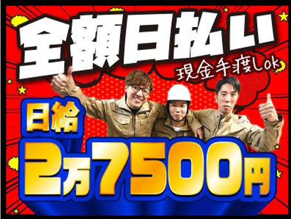給与 | 日給12,000円~27,500円 給与詳細 基本給:日給 1万2000円 〜 2万7500円 固定残業代:なし 【一律手当】 全員に一律で支払われる通勤・皆勤・家族手当金額:なし 全員に一律で支払われるその他手当金額:なし 記載金額から中抜き一切なし! 日給:1万2000円~2万7500円※就業規定あり ※早く現場が終わった場合でも日給保証制度あり <ガッツリ高収入稼げる!収入例> ⭐週3勤務の場合でも→月収33万円以上可!! ⭐(内訳)日給2万7500円×12日=月収33万円 フル勤務なら→月収60万円以上可 (内訳)日給2万7500円×22日=月収60万5000円 さらに該当資格を持っている方は+α資格手当も支給! <給与の支払いについて> ⭐日払い ⭐週払い ⭐月払い ※日払いの場合は全額当日手渡し、希望があれば翌日振込も可! ※週・月払いの場合は全額振込なので無駄な来社は不要! |