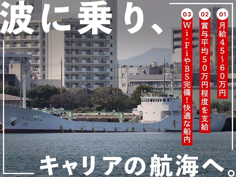 給与 | 月給600,000円~700,000円 給与 月給 600,000円~700,000円 ※所定労働時間超過分の労働については別途残業代を支給します ●昇給あり:年1回 ●賞与あり:年2回 →平均50万円ほどを支給しています。 <各種手当> ・交通費支給(月上限3万円) ・乗船手当 ・航海手当 ・インフレ手当 |
