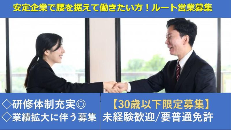 対象となる方 | 求めている人材 【必須条件】 ・30歳以下の方(キャリア形成のため) ・普通自動車免許をお持ちの方  ̄ ̄ ̄ ̄ ̄ ̄ ̄ ̄ ̄ ̄ ̄ ̄ ̄ ̄ ̄ ̄ ̄ ̄ ✅難しい志望動機は一切不問です/異業種出身者活躍中  ̄ ̄ ̄ ̄ ̄ ̄ ̄ ̄ ̄ ̄ ̄ ̄ ̄ ̄ ̄ ̄ ̄ ̄ 今回は、未来の新戦力を育成するための採用です。 そのため、30歳までの方を応募可能な求人としています。 ニッチな業界ですので、 中々経験者はいない前提で採用活動をしています。 そのため、当社の商材や働き方に興味がある方であれば大歓迎です◎ 着飾った理由は必要ないので、あなたのそのままでいらしてください。  ̄ ̄ ̄ ̄ ̄ ̄ ̄ ̄ ̄ ̄ ̄ ̄ ̄ ̄ ̄ ̄ ̄ ̄ ✅【このお仕事が向いている方】  ̄ ̄ ̄ ̄ ̄ ̄ ̄ ̄ ̄ ̄ ̄ ̄ ̄ ̄ ̄ ̄ ̄ ̄ ・フットワークが軽い方 ・お客様とのコミュニケーションを楽しめる方 お取引先は全国各地にあり、 対面を好まれるお客様が多いです。 そのため、 フットワークが軽い方だと、 お客様から選ばれるかもしれません。 当社は残業も少なく、 スケジュールも自分で調整が可能な環境です◎ メリハリをつけて働くことができます。  ̄ ̄ ̄ ̄ ̄ ̄ ̄ ̄ ̄ ̄ ̄ ̄ ̄ ̄ ̄ ̄ ̄ ̄ ✅【お仕事に向いていないかもしれない方】  ̄ ̄ ̄ ̄ ̄ ̄ ̄ ̄ ̄ ̄ ̄ ̄ ̄ ̄ ̄ ̄ ̄ ̄ ・臨機応変な対応が苦手な方 お客様のご要望に応えるため 業務時間では身軽に動ける方のほうが ご活躍ができます。 年齢の条件と理由:あり(例外事由3号のイ・30歳以下(長期勤続によるキャリア形成のため)) |