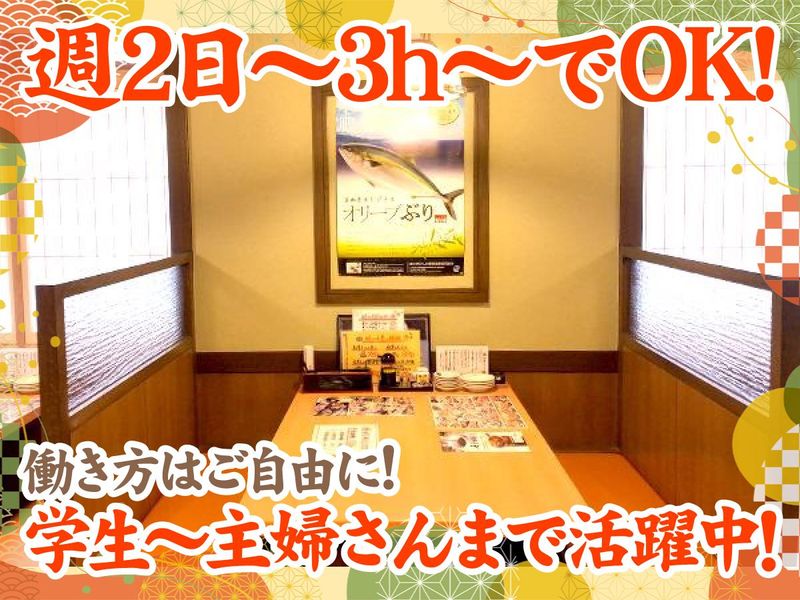 職種/仕事内容 | 仕事内容 ◆◇◆学生さん~主婦さんまで活躍中◇◆ 正月1/2.3&日曜日・祝日は時給UP! 「初めてのバイト何にしようかな…」 「仕事復帰したいけど不安…」 そんな方にピッタリ◎ 未経験も初バイトも大歓迎! \長く続けやすい環境です♪/ 学生さん~主婦さんまで多数活躍中! ご自身のライフスタイルや学校に合わせて長期で活躍できます◎ 【 ホール】お席案内、レジ、オーダー取りや配膳など 【キッチン業務】洗い場、盛り付け等の簡単な調理補助 お寿司やお造り、天ぷらの定食メニュー、 丼ものやコース料理等幅広いお料理を 手ごろな価格で、ご家族連れや友人との お食事を楽しんでもらっているお店です♪ ■学生さんの初バイトや未経験歓迎◎ 現在は学生~主婦さんまで幅広い世代が活躍中! 進路が決まった学生さんの初めてのバイト先 にもオススメですよ♪ ◆◇飲食・バイト未経験も大歓迎!◇◆ 経験は一切必要ナシ◎ 初バイトの方も慣れていただきやすい 業務がほとんど!分からないことが あればそばにいる先輩スタッフ誰でも 質問してもらって大丈夫です◎ ◆◇ガッツリ勤務もスキマ勤務もOK!◇◆ 「子どもが学校の時間で」「休日は長時間で」 等々、お好きな働き方をお選び下さい◎ ◆◇短期バイトor長期も選べます!◇◆ 「短期から始めて自分に合うか見学したい」 なんて働き方もお気軽にご相談くださいね! |