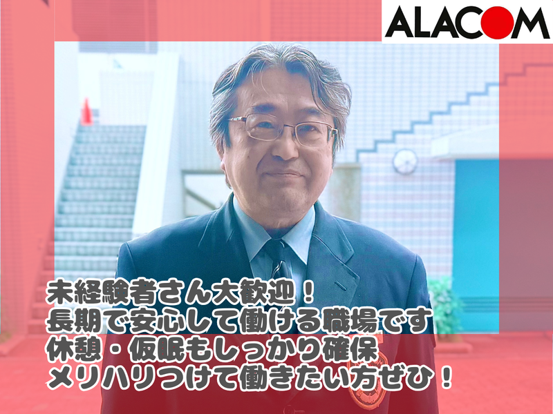 対象となる方 | 求めている人材 ・未経験歓迎 ・学歴不問 ・長期安定勤務したい方 ・警備業務の経験がある方も歓迎 <採用専用HPもぜひご覧ください!> https://arwrk.net/recruit/alacom <活躍中のスタッフさんより> 以前は電機設計を20年経験しました。 残業の多さからアラコムへ転職。現在は体力的な負担も軽減でき、無理なく働けています。 この仕事は、住民の安心・安全を守る重要な役割を担っています。 私自身、今後は一人でできることを増やし、 居住者の方が今後も安心して暮らせるようにサポートをしていきたいと思っています。 社会貢献を実感できるお仕事です。 一緒に働けるのを楽しみにしています! 年齢の条件と理由:あり(例外事由2号・18歳以上(警備業法による/労働基準法)) |