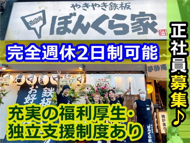 職種/仕事内容 | 募集要項 職種 お好み焼き屋のホールスタッフ 雇用形態 正社員 仕事内容 ホールスタッフのお仕事内容は、オーダー取り・お客様への料理提供などホール業務全般になります。 又、キッチン業務や店舗運営にも携わることがあり、正社員としてさまざまなやりがいがありますよ。 未経験の方は丁寧な研修体制・指導体制があるのでご安心ください! 一歩ずつできることを増やしていきましょう! 半年~1年後には飲食のプロとして成長が実感でき、キャリアアップを目指せる環境です。 【キャリアアップについて】 当社では、一般職・主任・リーダー・店長代理・副店長・店長・統括店長としっかりとした昇格制度を設けています。 スタッフ教育・数値管理・店舗運営を基礎から学びキャリアアップを目指すことが可能。 年齢や過去の経験に関わらず実力や実績で評価され収入アップにも繋げることができます。 又、スーパーバイザーやブランドマネージャー、ゼネラルマネージャーなど経営に携わるポジションに進むことも可能です。 時代の流れやトレンドを踏まえたメニュー開発や店舗開発にたずさわる大きなやりがいと成長を感じることができます。 思い描くワークライフバランスにより自身で選択してぜひ当社で長く勤務してください! ★社内独立制度・のれん分け制度の詳細は備考を確認ください。 |