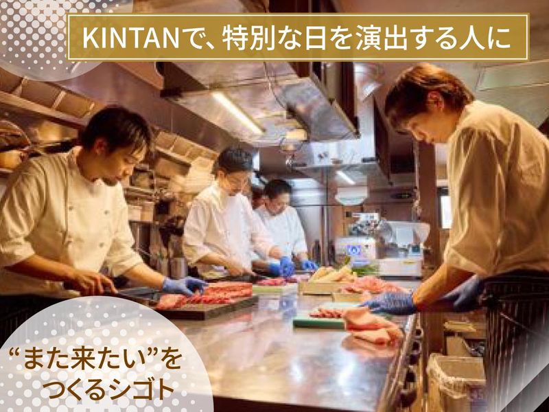 対象となる方 | 求めている人材 【私たちが新しい仲間に求めるマインド3選!】 ✅新しいことに挑戦する”勇気” ✅何事も楽しめる前向きな”気構え” ✅柔軟な”発想” <<飲食正社員未経験の方歓迎>> ⭐月給27万5000円~33万円!しっかり稼げる⭐ 飲食店での勤務経験があれば活躍可! (アルバイトの飲食経験も含みます) ⭐「アルバイトスタート」もOK⭐ 初めての正社員で不安という方、 まずは、お気軽にご相談ください。 ◆このような経験は尚歓迎 ・焼肉店の勤務 ・ホテル、レストラン等での経験 ・調理師免許保持者 ◆優遇 ◎レストランサービス技能検定1級取得者 ◎ソムリエ資格保有者 ◆こんな方にぴったり! ・食べることが好き ・お肉が大好物 ・人を喜ばせることや サプライズが好き ・人と話すことが好き ★20代~40代の社員が多数活躍中! アルバイトスタッフには学生が多く、 社員たちは年齢層が幅広く、経験豊富! 個々の良さを尊重する文化です。 【こんな方々が活躍中です!】 カフェ、肉バル、ビストロ、割烹料理、 バーテンダー、ファミリーレストラン、 焼肉、ステーキハウス、居酒屋、 日本食料理、和食、中華料理、ホテル調理、 レセプション、日本料理、和食、 バーテンダー、ハンバーガー、ソムリエなど +=+=+=+=+=+=+=+=+=+= ◆― 当社についてのご紹介 ―◆ 「お肉とワインをカジュアルに楽しんでいただく」を コンセプトにしたKINTANブランドで お客様に喜ばれるサービスをお届けしています。 『焼肉KINTAN』をはじめとする 23の飲食店を運営しています。 ◆ー当社が大切にしていることー◆ <<ビジョン>> 『その街で1番愛される、焼肉レストランでありたい』 私達はいつも、ご来店されるお客様に 喜んでいただける価値を提供すべく、 日々精進しています。 ビジョンである 『その街で1番愛される、焼肉レストランでありたい』 とは、KINTANのある街の人々に、 「焼肉」と「KINTANの空間」と 「サービス」 を通じて、 非日常な“幸福感”や“豊かさ”を 感じてもらうことです。 時代に流されず、 KINTANはこれからも 「特別」 「本物」 「コストパフォーマンス」 という価値を大切にし、 提供し続けたいと思います。 <<お客様の特別な日を彩る>> お客様単価が1万円を超える 私たちのお店には、 特別なひと時を過ごすために 訪れてくださるお客様が 多くいらっしゃいます。 「今日は、妻の誕生日で」 「娘が大学に合格したので、お祝いに」 「定年を迎えた父のお疲れ様会で」 「結婚1周年のお祝いで、妻にねだられて」 「勝負のデートで、来ました!」 お客様それぞれの ”一生の思い出” となるようなひと時に、 私たちのお店を選んでくださる。 感謝の気持ちと共に、 緊張感も忘れずに持ち続けて、 接客を行っています。 サプライズ演出もたびたびあり、 マニュアル通りの接客・・・とは いかないシーンもありますが、 お客様の満面の笑顔や、 あたたかい雰囲気に触れるたびに、 「あぁ、この仕事っていいなぁ」 と、実感できます。 +=+=+=+=+=+=+=+=+=+= |