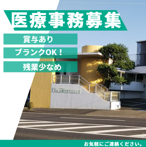 職種/仕事内容 | 仕事内容 -アピールポイント- ✅専門システムでのデータ入力がメイン♪ ✅賞与有◎頑張りをしっかり還元✨ ✅腰を据えて長く働ける環境◎ ✅残業少なめ - 【お仕事内容】  ̄ ̄ ̄ ̄ ̄ ̄ ̄ ̄ ̄ ̄ ̄ ̄ ̄ ̄ ̄ ̄ ̄ ̄ 内科クリニックの医療事務として 専門性を発揮していただきます。 落ち着いた環境で、着実にスキルを 活かせる職場です。 【具体的なお仕事】 ◆レセコン(電子カルテ連動)操作 └(専用システムを使用したデータ入力) ◆電話対応 └(取次ぎや簡単な問い合わせ対応) ◆備品管理 └(発注や在庫確認などの管理業務) 【1日のお仕事の流れ(例)】  ̄ ̄ ̄ ̄ ̄ ̄ ̄ ̄ ̄ ̄ ̄ ̄ ̄ ̄ ̄ ̄ ̄ ̄ 09:00 業務スタート └メール確認・タスク整理 09:30 データ入力業務、電話対応など 12:00 お昼休憩 13:00 午後の業務開始 └引き続きデータ入力や電話対応 17:00 在庫確認・翌日準備 └備品の在庫チェックなど 18:00 退勤 └残業少なめでプライベートも充実♪ 【ここで働くメリット✨】  ̄ ̄ ̄ ̄ ̄ ̄ ̄ ̄ ̄ ̄ ̄ ̄ ̄ ̄ ̄ ̄ ̄ ̄ ●安心ポイント● 専門システムの操作方法も 先輩社員が丁寧に指導するので、 ブランクがある方も安心です◎ 万全のフォローアップ体制で しっかりサポートいたします! 【当院について】  ̄ ̄ ̄ ̄ ̄ ̄ ̄ ̄ ̄ ̄ ̄ ̄ ̄ ̄ ̄ ̄ ̄ ̄─ 山脇内科クリニックは、 開業以来40年以上にわたり、 一般内科、消化器内科、循環器内科、 呼吸器内科などの診療を通じて、 地域の人々に密着した医療 (かかりつけ医)を行っております。 院内ロビーには、 オープンテラスを設けるなど、 明るく居心地の良い 空間づくりを意識しています。 地域に愛される地域密着型の クリニックとして、 共に患者様一人ひとりに 寄り添った医療サービスを 届けませんか? |