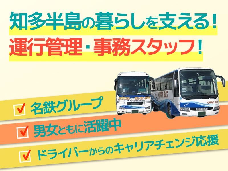 職種/仕事内容 | 仕事内容 \安定した名鉄グループの運行管理募集/ ━━━━━━━━━━━━━━━━━━ 知多の交通インフラを支えて80年以上。 地元の安定企業で キャリアを積んでいきませんか? ━━━━━━━━━━━━━━━━━━ 地域の役に立ちたい気持ちがあればOK 月8日休み・有給最大30日付与! 充実した福利厚生でサポート! ━━━━━━━━━━━━━━━━━━ 創業は1943年。 路線バスの運行を通じて 知多で暮らす多くの方の 毎日を支えてきた私たち。 名鉄グループの一員として 知多半島の各市町から委託された コミュニティバスの 運行も任されています。 今回は、バックオフィスで バス・ドライバーを支えるお仕事の募集です! 第一線で活躍する運転手だけではなく 後ろでサポートする仕事も重要な存在です。 地域の役に立ちたい、 キャリアアップをしていきたい、 そんな気持ちがある方と 出会いたいと思っています。 <お任せするお仕事> ・ドライバーのスケジュール管理 ・健康状態の確認、アルコールチェック ・バスの点検整備の確認、故障時の対応 ・運行ルートや時間の計画、効率的な運行の実現 ・ドライバーへの安全運転指導・教育 ・書類管理 その他一般事務業務をお願いしております。 実は内勤スタッフは男性も 多く在籍し活躍して頂いています! 運行管理・事務としてキャリアを重ねたり 資格取得し別の職種へ キャリアチャレンジもできる環境です。 <入社後について> まずは先輩スタッフのサポートをしながら、 仕事を覚えるところからスタート。 少しずつ業務を覚えていきましょう! <アピールポイント> \ 社内キャリアチェンジ制度あり / 会社全額負担で、大型二種免許や 運行管理者などの資格取得も可能。 社内キャリアチェンジ制度もあり スキルアップもかないます! \ 健康経営優良法人認証 / お客様に「安全・快適」を お届けするためには、 社員一人ひとりの心と身体が 健やかでなければならない。 それが、私たちの考え方です。 労働時間の法令遵守の徹底や メンタルヘルスへの取り組みなど 専門機関から5年連続で 認証を受けています。 また、働きやすい職場認証制度も 二ツ星を取得しました。 会社について—————————————— 設立 |昭和18年6月12日 代表者 |取締役社長:金森 隆浩 資本金 |1億円 事業内容|乗合・貸切バス事業 *現在は名鉄バスグループの一員として 地元のバス路線を再編成、 市町村のコミュニティバスの運営など、 安全輸送とサービス・商品の質の向上を 図っております。 |