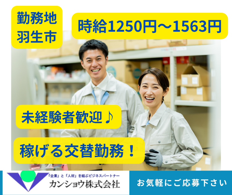 勤務地 | カンショウ株式会社 348-0005埼玉県羽生市 |