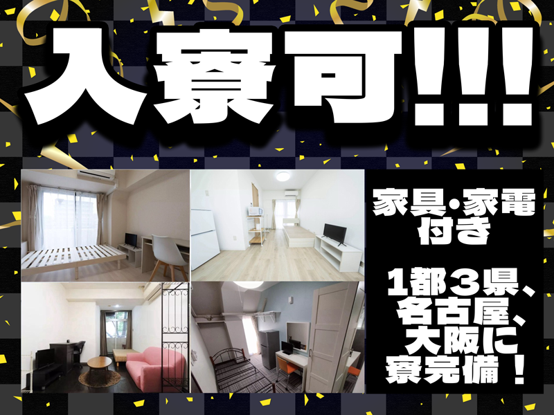 待遇・福利厚生 | 【福利厚生】 待遇・福利厚生 【福利厚生】 ◇車両レンタル可 ◇正社員登用実績あり ◇寮完備 ◇家具家電付き、1都3県名古屋大阪に寮完備 |