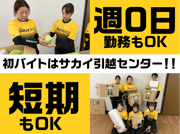 職種/仕事内容 | 仕事内容 ─────────────────── 重たい荷物を運ぶことはありません!✨ ─────────────────── サカイ引越センターにて 「梱包スタッフ」を募集いたします。 ・荷物の梱包 ・荷ほどき など 友達同士での応募も大歓迎です✨ 初めてのアルバイトや ちょっとしたお小遣い稼ぎにオススメです! ─────────────────── \シフト希望はスマホで申請/ ✅週0シフトもOK ✅1日4h~の時短OK ✅1ヶ月程度の短期もOK ─────────────────── |