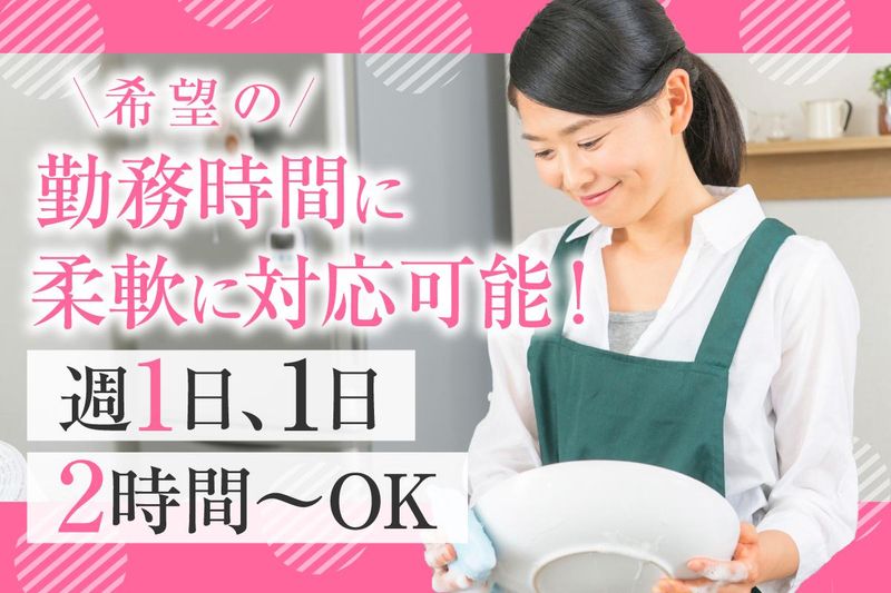 職種/仕事内容 | 仕事内容 <20-40代の女性活躍中!> 時間帯はとにかく融通が利く! 未経験からのチャレンジ大歓迎 ブランクがある方も大丈夫! 週1日~、1日2時間~短時間も可 <仕事内容> 日々の暮らしでの「家事」には 給与が発生しませんが・・・ その家事で稼いでみませんか? 特別なスキルは要りません。 ・洗濯 ・掃除 ・片付け ・料理 など を丁寧にやるだけ!! 研修中は先輩スタッフが 同行し丁寧に指導と サポートしますので 安心して始められます! <先輩スタッフにインタビュー> 30代/女性 結婚、出産を機に 仕事を休職していたんです。 前職は事務をしていたのですが、 子どもも小さくまだ完全に 復帰する余裕はないので 週1日~短時間でもOK とのことで応募しました。 丁寧な研修制度が整っており 初めての私でも大丈夫でした。 融通も利きますし、 長く腰をすえてお仕事できる 環境です! |