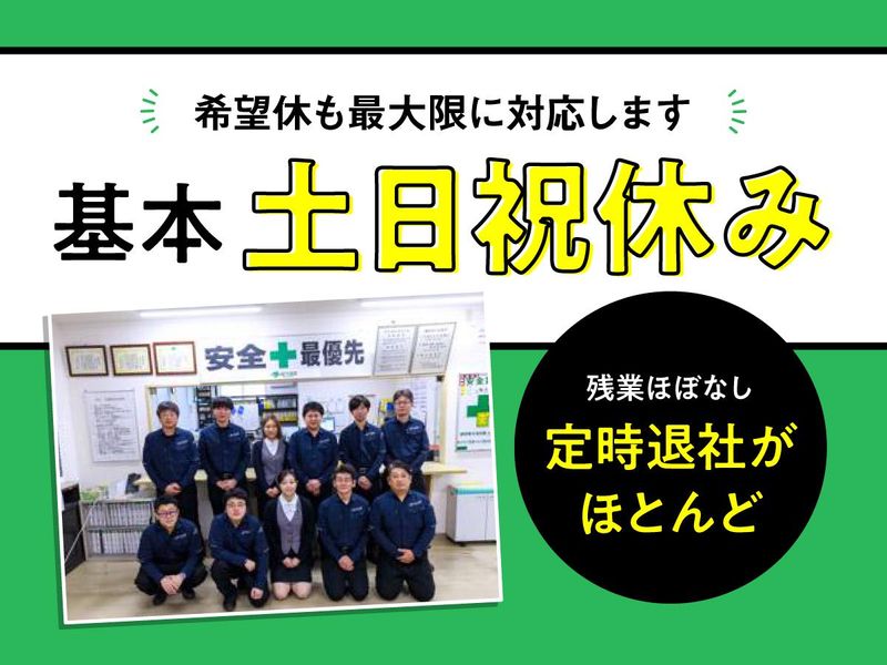 職場環境・雰囲気 | 職場環境 「経営の最も重要な要素は“人財”であり全てを成す基は人材の育成である」という基本理念のもと、社員を最優先に考えた経営・環境づくりを行っている当社◎安全運転や安全作業のための研修も実施しており、上長面談なども通して総合的に社員のフォローを行っています! 喫煙所:喫煙所あり(屋内) 受動喫煙対策あり(喫煙所設置) |