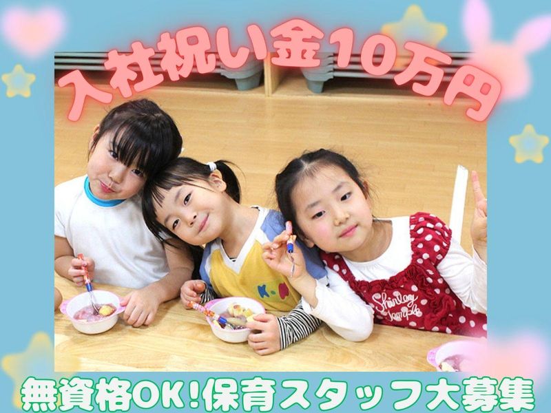 職種/仕事内容 | 仕事内容 ⭐ 入社祝い金10万円支給 ⭐  ̄ ̄ ̄ ̄ ̄ ̄ ̄ ̄ ̄ ̄ ̄ ̄ ̄ ̄ ̄ ╲╲✨遠方からの応募も歓迎✨╱╱ 「都会で働いてみたい」 「地元を出てみたい」 「一人暮らししたいけど不安もある」 …という方も安心して働けるよう "社宅制度"もあります◎ *。・。*。・。*。・。*。・。*。・。*。・。* <乳幼児(0~5歳児)の保育業務> ⏩保育に関する記録・管理 ⏩お散歩・昼食・お昼寝等の見守り ⏩保育環境の整備(清掃)等 ✨託児所あり! 育休からの復帰応援します ✨子ども達としっかり向き合える 家庭的な雰囲気の保育園です♪ ✨季節イベントや園外保育も 積極的に行います。 動物園や博物館等の施設見学、 芋ほりや苺狩りなど 自然と触れ合う体験も多数実施 |