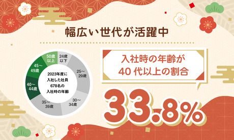 職場環境・雰囲気 | 職場環境 【従業員構成】 当社社員の入社時の平均年齢は【34.5歳】(2023年度) 自分自身の新しい人生を歩みたい方を大同生命は応援します! 「家庭に専念していたが復職したい」 「子育てと両立し働きたい」 などの理由で入社される主婦・子育てママさんが多数います。 【この仕事を通して身に付くこと】 「働きやすさ」「長く勤めている女性の多さ」「年齢不問」という点に魅かれて入社した人が多数! 未経験でも活躍できている理由は、研修制度にあります。 ビジネスマナーや税務、マネジメントなど、年次・役職に応じて種類豊富にご用意。さらに、PCで視聴できるなど、個々人の必要に応じて学べる環境を整えています。 また、資格取得も推奨。「ファイナンシャル・プランニング技能士」3級はプランナーの6割が取得済です。 |