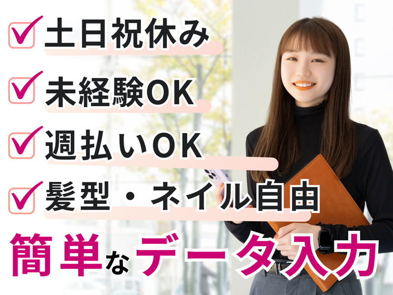 対象となる方 | 求めている人材 \特別なスキル・経験は一切不要!/ 基本的なパソコン入力(数字)ができればOK! 未経験・ブランク明けの方も多数活躍中の職場です◎ ▼こんな方におすすめ ・事務職デビューしたい方 ・数字入力やタイピングに抵抗がない方 ・一人で黙々と作業したい方 ・座ってできる仕事を探している方 ・オフィスカジュアル・髪色自由など自由な雰囲気が好きな方 ・子育てが落ち着いた方の社会復帰にも◎ 現在は、30代~50代の女性スタッフが多数活躍中! 事務職が初めての方でも、親切&丁寧に教えてもらえる環境で安心です♪ |