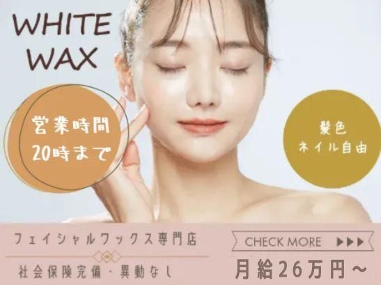 職種/仕事内容 | 仕事内容 スタッフ大募集♪ スタッフの皆さんが働きやすい 職場作りを目指します!!✨ -アピールポイント- ■おしゃれを楽しみながら働ける✨ ┗ネイルOK!(シンプルなもの) ┗髪色ハイトーンOK! ■月給25万円以上✨ ┗昇給あり!物販手当もあり!! ■駅チカ! ┗お仕事終わりに買い物をしたり お友達と食事に行ったり…✨ ■充実した研修で安心スタート◎ ┗「経験はあるけど浅くて不安…」 という方もご安心ください♪ ■プライベートも充実✨ ┗営業時間は20時まで! 月8日休みで平日の休み希望は 何日でも相談OK!! 土日の休み取得も月1~2回OK! - ✅仕事内容 ─────── ホワイトワックス三ノ宮店は 現在全国展開中のエステサロンです⭐ SNSで話題沸騰中の“フェイシャルワックス″を 専門とする施術内容を行なっていただきます♬ スタッフの皆さんが働きやすく 自己実現できるステージを提供して参ります。 <具体的なお仕事> ■フェイシャルワックスの施術 └肌の表面を滑らかにし、 化粧ノリを良くします♪ ■お客様へのカウンセリング └お肌の状態やお悩みを伺います◎ ■サロンの運営サポート └清掃や備品管理などをお願いします! ■物販商品の提案 └お客様に合ったスキンケア商品の ご案内をお願いします! ✅安心ポイント ───────── ■異動なし! ■ベッド数は3席♪ 1日あたりの入客数は4~5名程度◎ 一人ひとりのお客様に丁寧な 接客・施術ができる環境です☆ ■実務経験が浅い方でも、 しっかりとした研修で技術を 身につけることができます! ■育休・産休制度あり♪ ■5日間の連休取得OK! しっかり休めるからこそ お仕事も頑張れる♪ プライベート充実も叶う環境です✨ あなたの経験やスキルを 当店で活かしてみませんか?✨ 皆さまからのご応募をお待ちしております♪ |