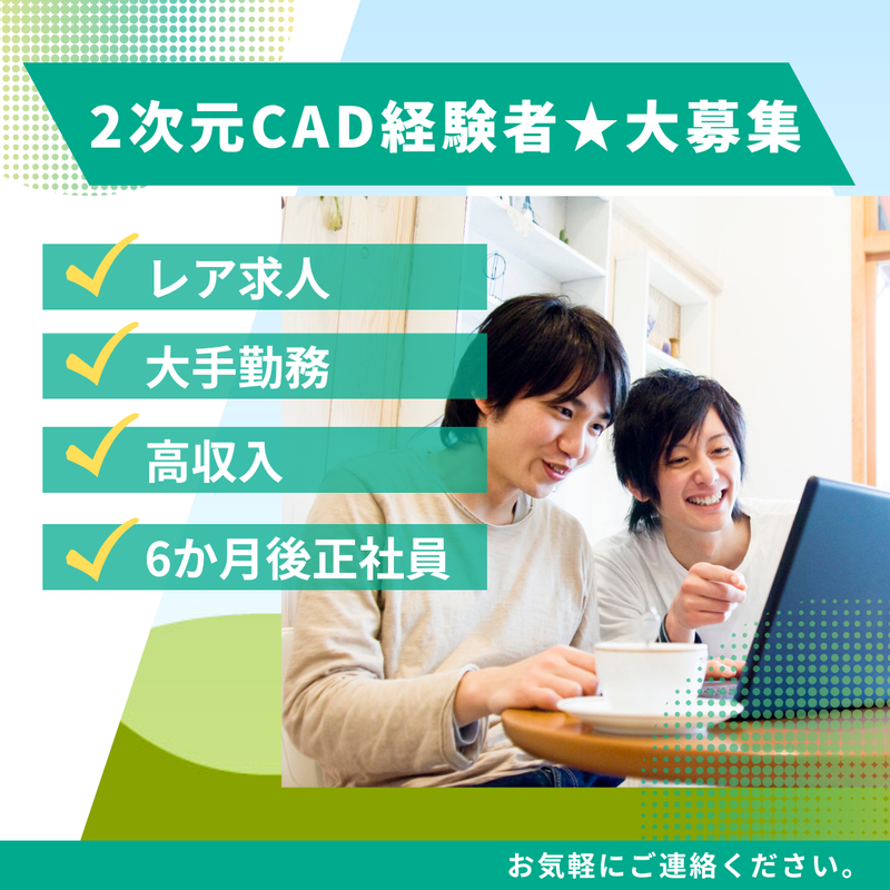 対象となる方 | 求めている人材  ̄ ̄ ̄ ̄ ̄ ̄ ̄ ̄ ̄ ̄ ̄ ̄ ̄ ̄ ̄ ̄ ̄ ̄ 社員教育・研修や資格取得 制度が充実した企業です。 まずは派遣で、次に正社員 として働くチャンス!!  ̄ ̄ ̄ ̄ ̄ ̄ ̄ ̄ ̄ ̄ ̄ ̄ ̄ ̄ ̄ ̄ ̄ ̄ 【必須条件】 ◆2次元CADを使ったことがある方 長く腰を据えて働きたい方の ご応募をお待ちしています♪ 【歓迎】 ◆ハウスメーカー・建築・土木関連業界経験者歓迎!! ✅主婦・主夫活躍中 ✅20代も活躍中 ✅子育てママ活躍中 ✅30代も活躍中 ✅第二新卒活躍中 ✅40代も活躍中 |