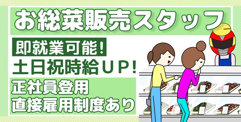 職種/仕事内容 | 仕事の内容 【駅チカ!ヘルシー志向のお惣菜・お弁当店で販売スタッフ募集】 \未経験OK×残業ほぼなし×正社員登用のチャンスあり!/ ◆ 福井駅前の百貨店内でアクセス抜群! ◆ プライベートも充実の好環境! ◆ 未経験からスタート可能!接客スキルが身につきます! 【お仕事内容】 即就業可能! お客様に「美味しい!」を届けるお仕事です♪ ・接客業務 ・お惣菜の量り売り ・サラダの盛り付け ・パック詰め ・フライヤー作業 ※昼過ぎや夕方はお客様が多く来店されますが、スタッフ同士で助け合える職場です! 【職場の雰囲気】 ・未経験でも安心! →お仕事の流れやコツは先輩が丁寧に教えてくれます! ・販売経験者も大募集!! →今までのスキルを活かして働けます! ・チームワーク抜群! →忙しい時間帯もみんなで協力して乗り切ります! 【おすすめポイント】 ・ 福井駅前の百貨店内!公共交通機関での通勤ラクラク♪ ・ 残業ほぼなし!プライベートとの両立◎ ・ 休日は時給UP!しっかり稼げます! ・ 制服貸与(上着・帽子) ・ 従業員専用の休憩室完備! ・ 頑張り次第で正社員登用の可能性あり! 【こんな方にピッタリ!】 ・接客や販売に興味がある方 ・ヘルシー志向のお惣菜やお弁当に関心のある方 ・駅チカで便利な職場を探している方 \スタッフみんなで協力し合い、楽しく働ける環境です!/ 未経験の方も、経験者の方も大歓迎! まずはお気軽にお問い合わせください。 ご応募お待ちしています♪ ≪新しい福利厚生制度を導入致しました!!≫ 病気や怪我で働けなくなっても、給料の60%~86%を約3年間補償する給料補償制度を導入致しました!! クラリスで働く全従業員(規定有)を対象としています(*'ω'*) 詳しくは当社HPをご確認ください♪ ★本求人にご興味をお持ちの方は、応募する!より必須項目記載の上、 お問合せ下さい。 (お電話でのお問合わせ先:0120-67-3244 ※平日9時00分~18時00分) |