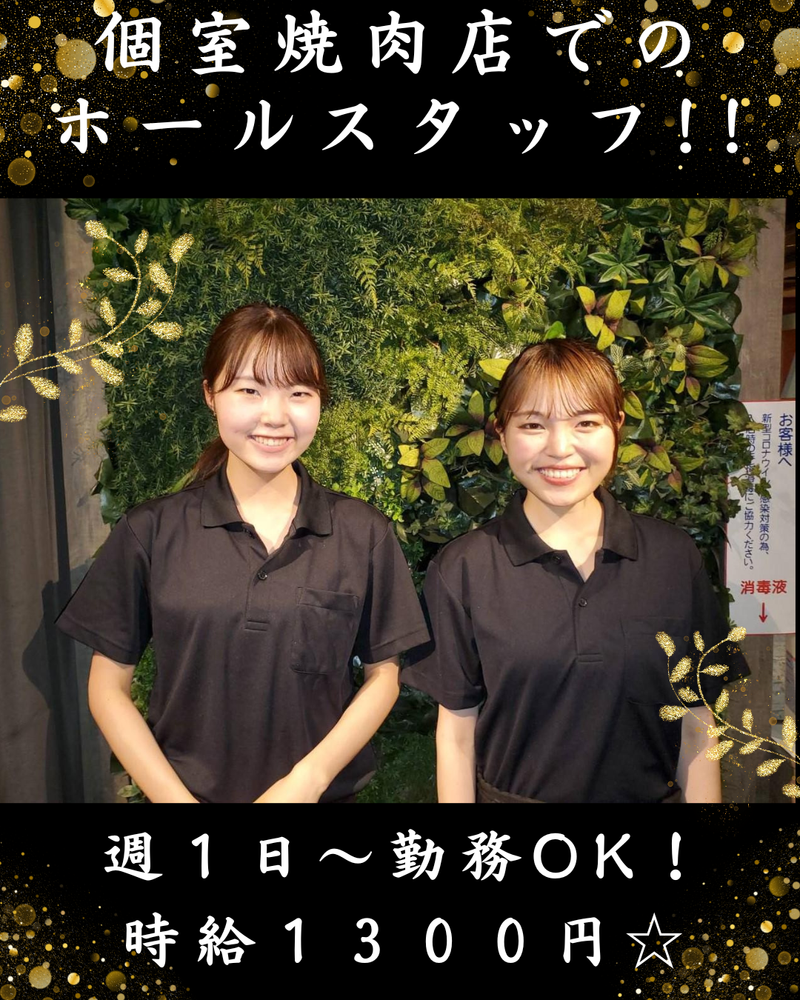 職種/仕事内容 | 仕事内容 •• ━━━━━ ••●•• ━━━━━ •• 【時給1300円】【週2日~】【まかないあり】 落ち着いた雰囲気の“個室焼肉店”で、 接客デビューしませんか? #飲食業未経験の方も大歓迎! #まかない付きでお腹も満足♪ #大学生・フリーターさん活躍中! •• ━━━━━ ••●•• ━━━━━ •• <アルバイト・パート>ホールスタッフ 落ち着いた雰囲気が人気の 個室焼肉店『焼肉 大宮苑』にて、 ホールスタッフとして接客業務をお願いします! 【お仕事内容】 ・ご来店されたお客様のご案内 ・オーダー取り(タブレット操作中心) ・お料理やドリンクの提供 ・レジ業務 ・店内清掃 など まずは笑顔で 「いらっしゃいませ!」が言えればOK♪ お肉の部位やメニュー名も、 先輩スタッフが丁寧に教えます。 近くでしっかりフォローするので、 初バイトでも安心です☆ ✨POINT✨ ▶まかない付きでお腹も満足♪ ▶終電考慮&シフト柔軟◎ ▶友達と一緒の応募もOK! 接客を通じて、自然と “おもてなし力”や“丁寧な言葉づかい” が身につきます。 将来どんな仕事にも役立つ スキルが学べる環境です! あなたの「笑顔」が、 焼肉大宮苑をさらに輝かせます! 「少し気になる!」という方も、 ぜひお気軽にご応募ください! あなたとお会いできる日を スタッフ一同楽しみにしています♩ |