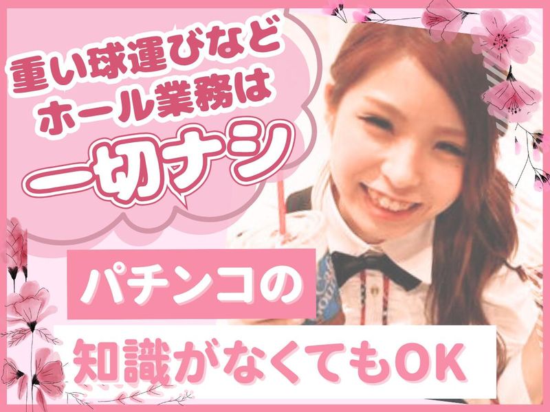 対象となる方 | 求めている人材 未経験OK!WワークOK! 禁煙店舗で快適に働けます。 禁煙・綺麗な店舗・カワイイ制服で勤務できます。 パチンコ店に入ったことのない方、未経験の方でもお気軽にご応募ください。 優しい先輩がしっかりとサポートしますので安心して働けます! |
