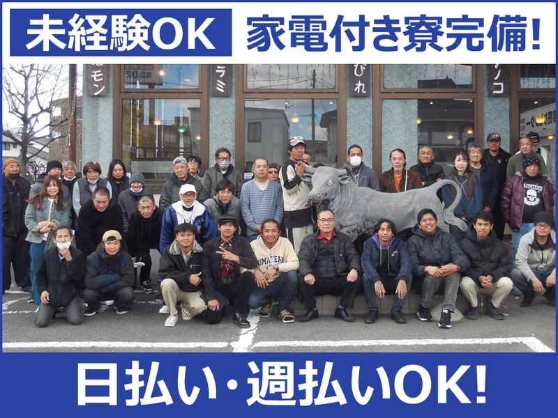 職種/仕事内容 | 仕事内容 \ 残業ほぼなし!プライベートも充実 / 未経験から『住みやすい街づくり』に貢献! 〇自立も応援*家電完備の個室寮あり 〇日給制:全額現金で日払い&週払い可能 >>履歴書不要&即日面接も可能<< 思い立ったその日に応募~面接までできる! -------------------- 【仕事内容】 解体現場の工事補助・雑工をお任せします! 現場でのスコップ作業や片付けなどが中心! 難しい作業は一切ないのでご安心ください! << 未経験でも無理なくスタート! >> ほとんどの社員が未経験から始めているので サポート体制は万全!不明点や不安なことは 近くにいる先輩になんでも聞いてください! -------------------- <以下、家電設備完備の個室寮あります!> エアコン/冷蔵庫/電子レンジ/洗濯機/テレビ ※寮費半年間無料!空き部屋残りわずか!※ 必要な家電は既に揃っているので心配なし! [HP]*https://mizuho-maebashi.com/ |