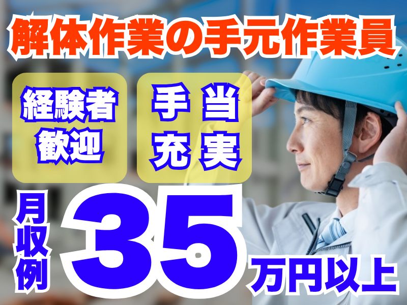 職種/仕事内容 | 仕事内容 求人のおすすめポイント。・。・。・。 ★経験者歓迎!スキルが活かせます! ★昇給あり!頑張りはしっかり評価◎ ★車通勤OK!満員電車とはサヨナラ♪ ★髪色・髪形自由、髭OK ・。・。・。・。・。・。・。・。・。・ 解体工事の手元作業員として お仕事をお任せします。 経験とスキルを活かして 働いてみませんか? 現場が安全に進むために必要な 重要な作業です。 <この仕事のやりがい> ◎月収30万円以上!しっかり稼げる! 充実した手当で安定した生活を サポートします! 頑張りは昇給にも反映しますよ! ◎経験者大歓迎!! 即戦力としてあなたをお迎えします! あなたの技術やスキルを未経験の スタッフにも共有していただき、 チームを引っ張っていって下さい◎ |