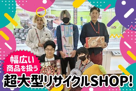 職種/仕事内容 | 仕事内容 ■クレーンゲームを扱う、アミューズメント部門でのお仕事です! 業務内容は ・景品の補充や入れ替え ・お客様対応 ・POP作成 ・フロアの清掃 その他、全体の売り場作りとなります! ■経験は問いません 丁寧な研修があるので、経験がない方も安心して始めていただけます。 来月の景品は何にするかを相談したり、みんなで楽しくお仕事しましょう!」 ■ 好きな服装・ヘアスタイルで勤務OK! 制服はなし!髪型・髪色・ネイルも自由なので、オシャレを楽しみながら働けます。 スタッフ同士の仲も良く、リラックスした雰囲気の中でお仕事ができます。 困ったことがあれば、先輩スタッフがしっかりフォロー! ■ お客様すべてにサイコーのヒマつぶしを。 私たちは、幅広い地域でリユースショップを展開しています。 アパレル・電化製品・書籍・ゲームなど多彩な品物を買取・販売し、楽しさや感動を提供。 豊富な品揃えで多くのお客様に親しまれています。 多様な商品を扱うからこそ、個性豊かなスタッフが活躍中! |
