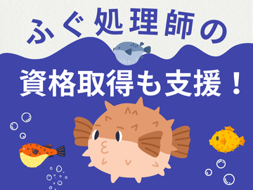 待遇・福利厚生 | 【保険制度】 雇用保険、労災保険、健康保険、厚生年金 【福利厚生】 待遇・福利厚生 【福利厚生】 *社会保険完備 *交通費全額支給 *賞与年2回+業績に応じて決算賞与 *ふぐ処理師の資格取得支援有 *昇給有 *制服貸与 *車通勤ok(任意保険加入) *役職手当有 *退職金制度(勤続3年以上) |