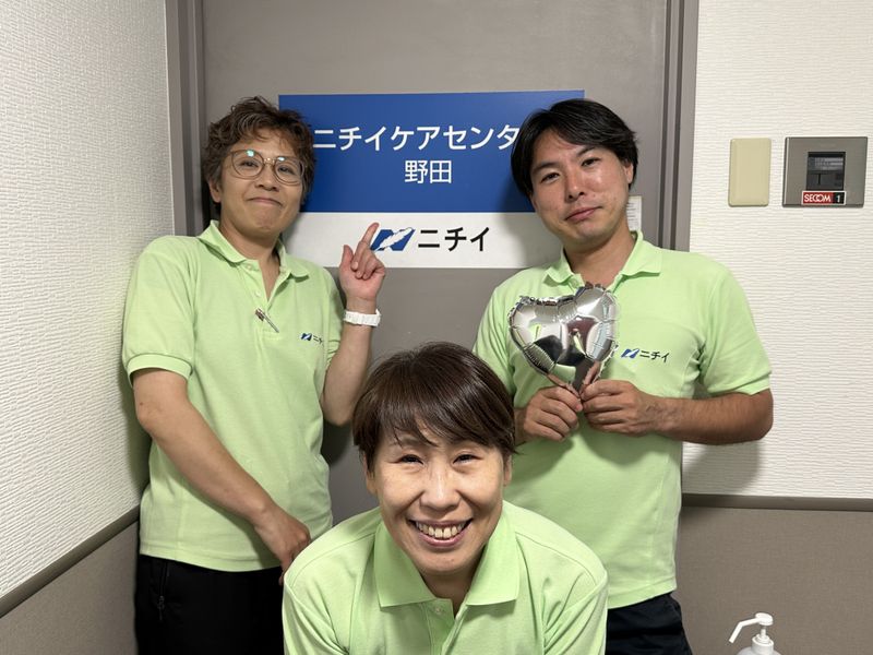 職場環境・雰囲気 | 【Point オススメポイント】 ホームヘルパー2級、初任者研修、実務者研修、介護福祉士などの資格はあるけど、 ブランクがあって心配な方、未経験で自信がない方でも、優しい先輩ヘルパーさんが丁寧に業務を教えますので 安心して働く事ができます!「私、ひとりで行けます!」となるまで十分に研修・同行を行います。 「親の介護」「子育て」中の主夫・主婦パートのかたも活躍中です! 一緒に働くヘルパーさんを募集中です。 お気軽にお問合せください。 ご希望の面接枠がない場合はご相談ください。土日でも可能な限り調整します。 【Message 採用担当者より】 ニチイケアセンター野田は30代~70代までの幅広い世代の明るいスタッフ勢ぞろいです。 お話し好きで明るいスタッフばかりで事務所はいつも賑やかです。 仕事の相談や困りごとがあれば、そんな雰囲気の中で管理者や先輩ヘルパーさんが 相談にのってくれたり、事務所内でも介助の練習を行ったりと心配事はすぐに解決できると思います。 研修も不安がなくなるまで同行しますので今から始めるにはとてもいい環境だと思います! 定期的に「介護のお仕事相談会」も行っていますのでぜひいらして下さい。 主夫・主婦パート歓迎!介護士・介護スタッフとして一緒にはたらきましょう! ハローワークの紹介状をお持ちの方は面接時にご持参ください。 |