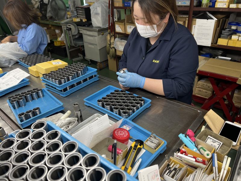 職種/仕事内容 | 仕事内容 イース精工株式会社では、産業機械などに組み込まれて使用される、スライドベアリングという機械部品の製造販売を主に行っております。 今回募集のお仕事は「組立作業~出荷」までを行っていただく【組立班】になります。 組立班の具体的な仕事内容は 「組立」:手作業でベアリングのパーツを組み合わせて組み立てます。 「検査」:ボールの転がりは問題ないか?外観にキズは無いか?など確認します。 「マーキング」:レーザーマーカー機を使用して、各型番を製品にレーザーでマーキングします。 「包装・梱包」:検査などが完了した製品を袋に入れ、その後箱に詰めてラベルで封をします。その箱詰めされた製品をさらに出荷用の大きな箱に詰めます。 「出荷」:出荷用の箱に詰めた数が間違っていないか確認し、出荷用の伝票を張り付けて完了です。 一人で進めていく作業というよりは、班全員で作業を進めていきますので、指導された後でも分からないことがあれば、 すぐ先輩に聞きやすい環境となっております。 |