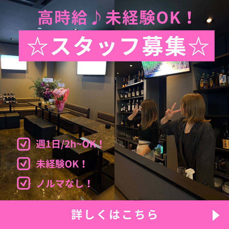 職種/仕事内容 | 仕事内容 ☆11月オープンのキレイな新店舗!☆ ・━・✧・━・✧・━・✧・━・✧・━・✧・━・✧・━・ ✅楽しくフランクなスタッフ達と楽しく働けます! ✅未経験スタッフ活躍中! ✅カラオケスナックだけどカラオケは歌う必要なし! ✅五反田という好立地!稼げるだけでなく 素晴らしい繋がりがたくさん出来ます! ✅髪型髪色自由/ネイル・ピアスOK! ・━・✧・━・✧・━・✧・━・✧・━・✧・━・✧・━・  ̄ ̄ ̄ ̄ ̄ ̄ ̄ ̄ ̄ ̄ ̄ ̄ ̄ ̄ ̄ ̄ ̄ ̄ 20-30代中心の楽しくフランクなスタッフしか いないため未経験の方も安心して働けますよ♪ 店長も気さくで優しいので、 仕事のこともプライベートのことも 気軽に相談できますよ! ✨高時給×のびのび働ける!✨  ̄ ̄ ̄ ̄ ̄ ̄ ̄ ̄ ̄ ̄ ̄ ̄ ̄ ̄ ̄ 頑張り次第で昇給もあり! 更にボトルメニューをドリンクをお客様から頂くとドリンクバックがつきます! 稼ぎたい人にも向いています! もちろん、ノルマは一切ナシ! お客様の歌を聞いているだけでもOK! たくさん稼ぎたい方も、 ワイワイ楽しく盛り上がりたい方も、 みんな大歓迎です♪ ◤仕事内容について ◢ お客様への接客をメインに、 ビールやハイボールなどの 簡単なドリンク作成および補助になります。 基本的にシンプルな業務が多いため、 未経験の方でもすぐに慣れますよ! あくまでも接客がメインですので、 お客様との会話を楽しんでください! |